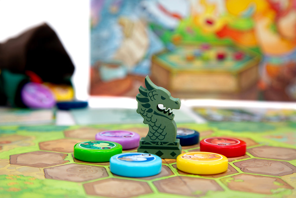 In this 2 player game set in the universe of Flamecraft, this time it’s about getting your dragons in the right places. Hybrid dragons are also here to play with double the artisanal skills. As you play, the board will fill up with dragons, stacking and soaring across the table. You will fire up abilities, make matches and score shops!