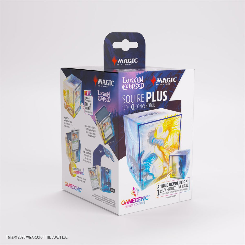 The product many players have been eagerly waiting for: our highly rated Squire in an upgraded PLUS version. The Squire PLUS 100+ XL is a premium deck box, specifically designed for the widely popular Magic: The Gathering™ format “Commander”. It includes a Slide Card Case for displaying the Commander or top card with additional UV protection. Due to the innovative placement, the stored deck can be easily identified without opening the box. The Slide Card Case can also be detached and used during gameplay.