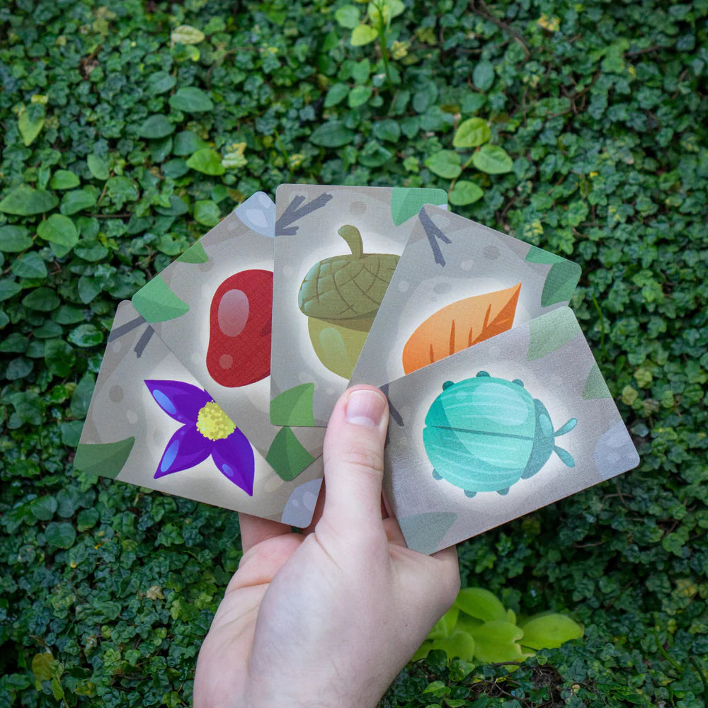 You play as the adorable Sapling, scuttling about the forest floor gathering ingredients from beneath a tree. The deck of ingredients cards is placed face-down in the center of the table and is referred to as the Tree. To start the game, you "Shake the Tree", revealing 8 face-up cards around the Tree. The Sapling of the group, or the youngest player, goes first.