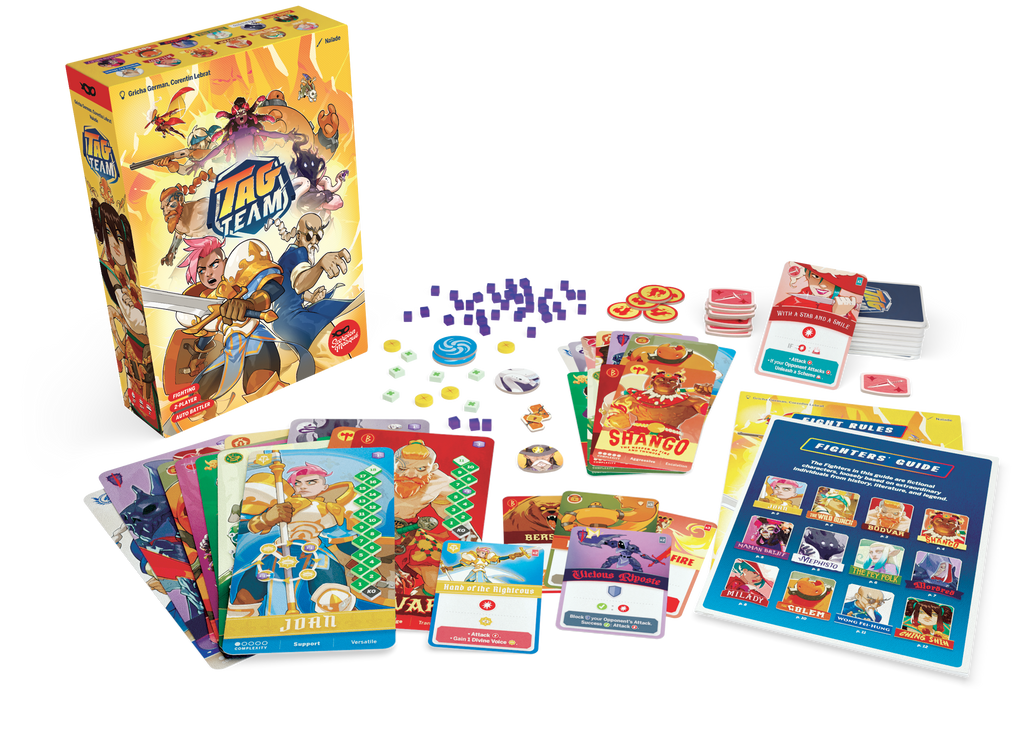 Inspired by classic arcade-fighting games, Tag Team is an auto battler combined with a deck-building game. Make your team of two fighters from the twelve available — each with their own techniques and special moves — and build an unbeatable synergy by combining their two unique decks!