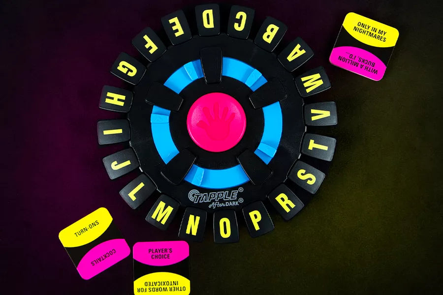 Tapple: After Dark is an adults[only version of the party game Tapple, in which players are given a topic and challenged to name a word that fits that topic. You have only ten seconds to give an answer, and once you do, the starting letter of that answer is now out of play for everyone until the end of the round.