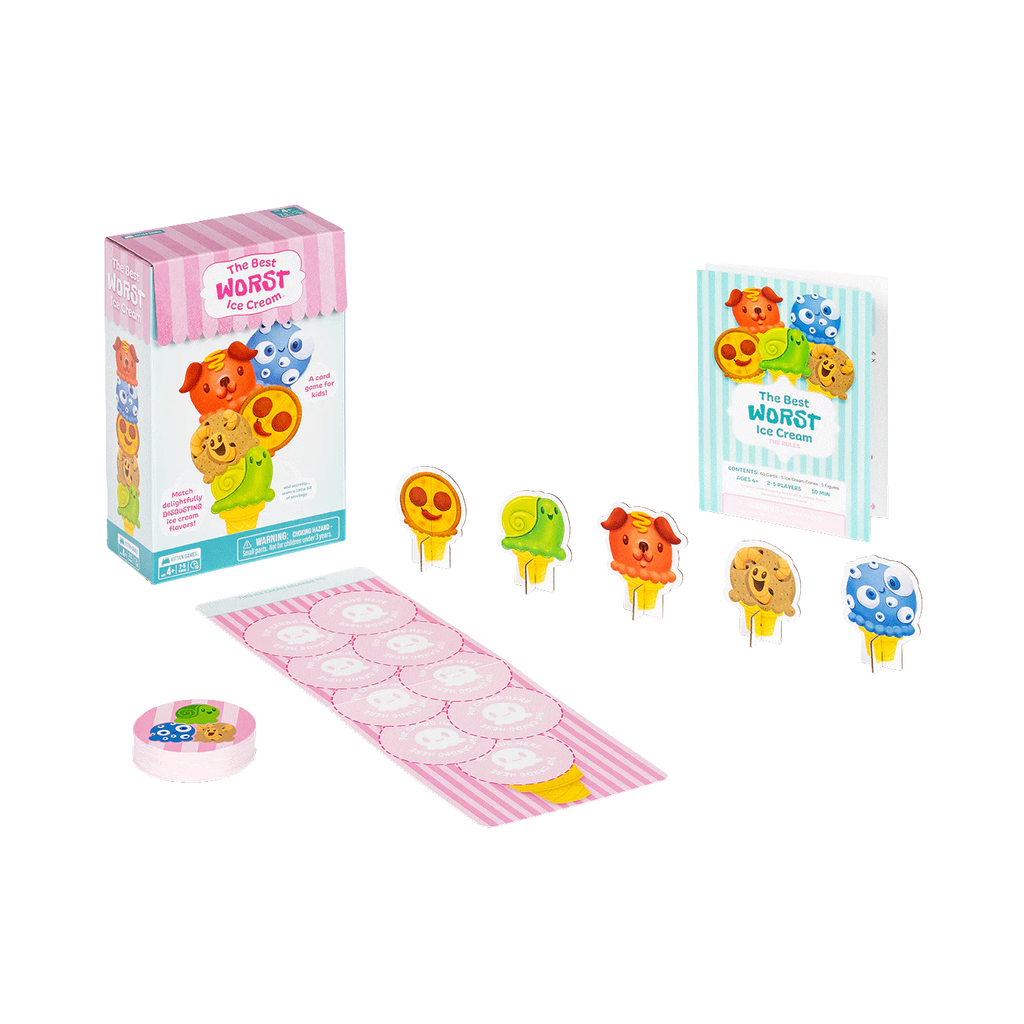 They’ll use reasoning and creative thinking to match flavors and fill their Ice Cream Cone, and you’ll have fun playing along. It’s easy to learn and fast to play with funky flavors that spark creative conversations.
