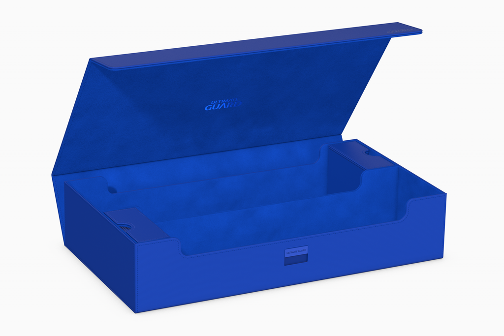 The ultimate spacious and flexible box for storing large collections. This box can hold more than 1000 double-sleeved cards or carry multiple decks and/or Play-Mats plus other Ultimate Guard products like the Sidewinder 133+. Two removable, magnetic, adjustable and stackable trays make this box unique: it’s adaptable for all kinds of games and formats and enables multiple different ways of storing and using your collection.
