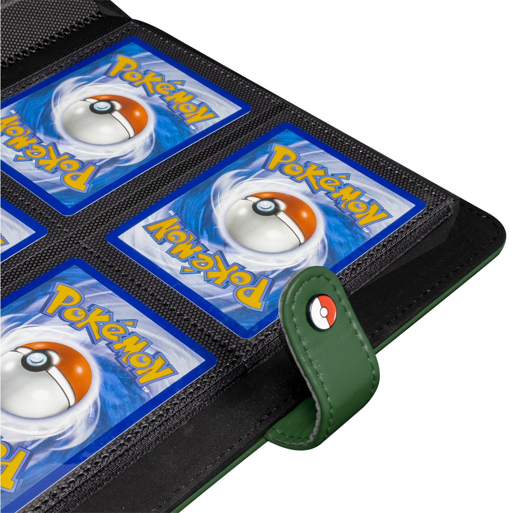 The Premium Snap Binder for Pokémon is the ideal accessory for trading card collectors of every age! Each binder features a red padded leatherette cover with a rubber Pokémon logo emblem, and can be securely closed with the enamel Poké Ball snap on the front. Inside this durable binder, you’ll find twenty side-loading 4-pocket pages sized for standard trading cards, allowing you to store up to 160 cards in Deck Protector® sleeves. Pages feature a low-friction black backing, creating a separation between the front and back pockets as well as providing cards a classic framed look. Every Premium Snap Binder is made with acid-free, non-PVC materials to ensure your cards are well protected and preserved.