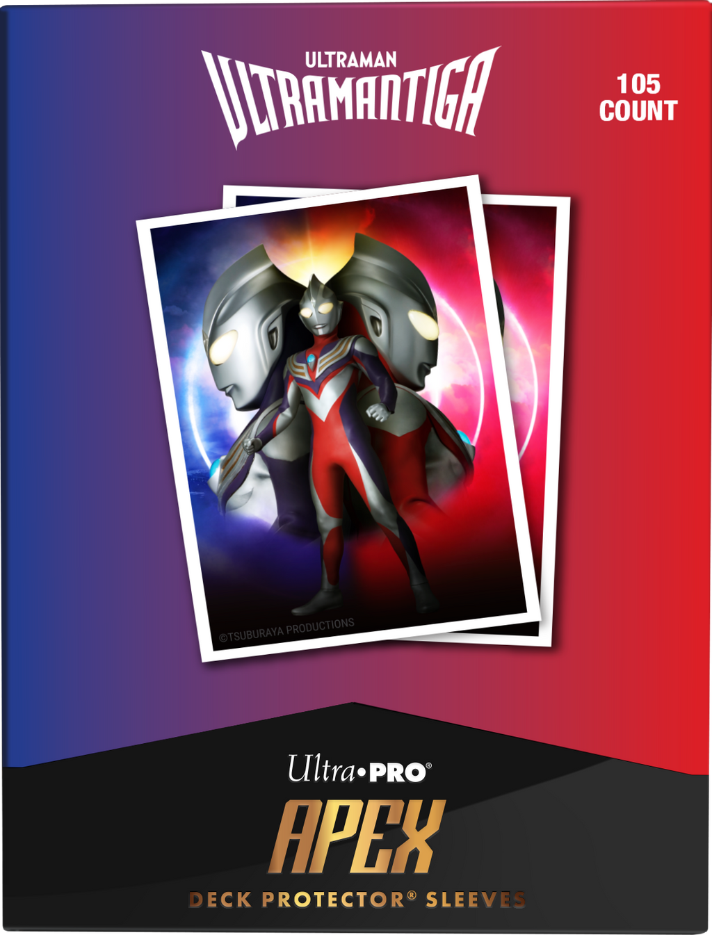 The 105ct APEX DECK PROTECTOR® Sleeves for Tabletop Gaming are made with our new easy-shuffle formulation and feature vibrant ULTRAMAN TIGA artwork on a textured back. Archival-safe materials ensure you can sleeve your cards with confidence, and the gloss clear front allows your foil cards to shine! Sized for standard size trading cards measuring 2.5 in. x 3.5 in.